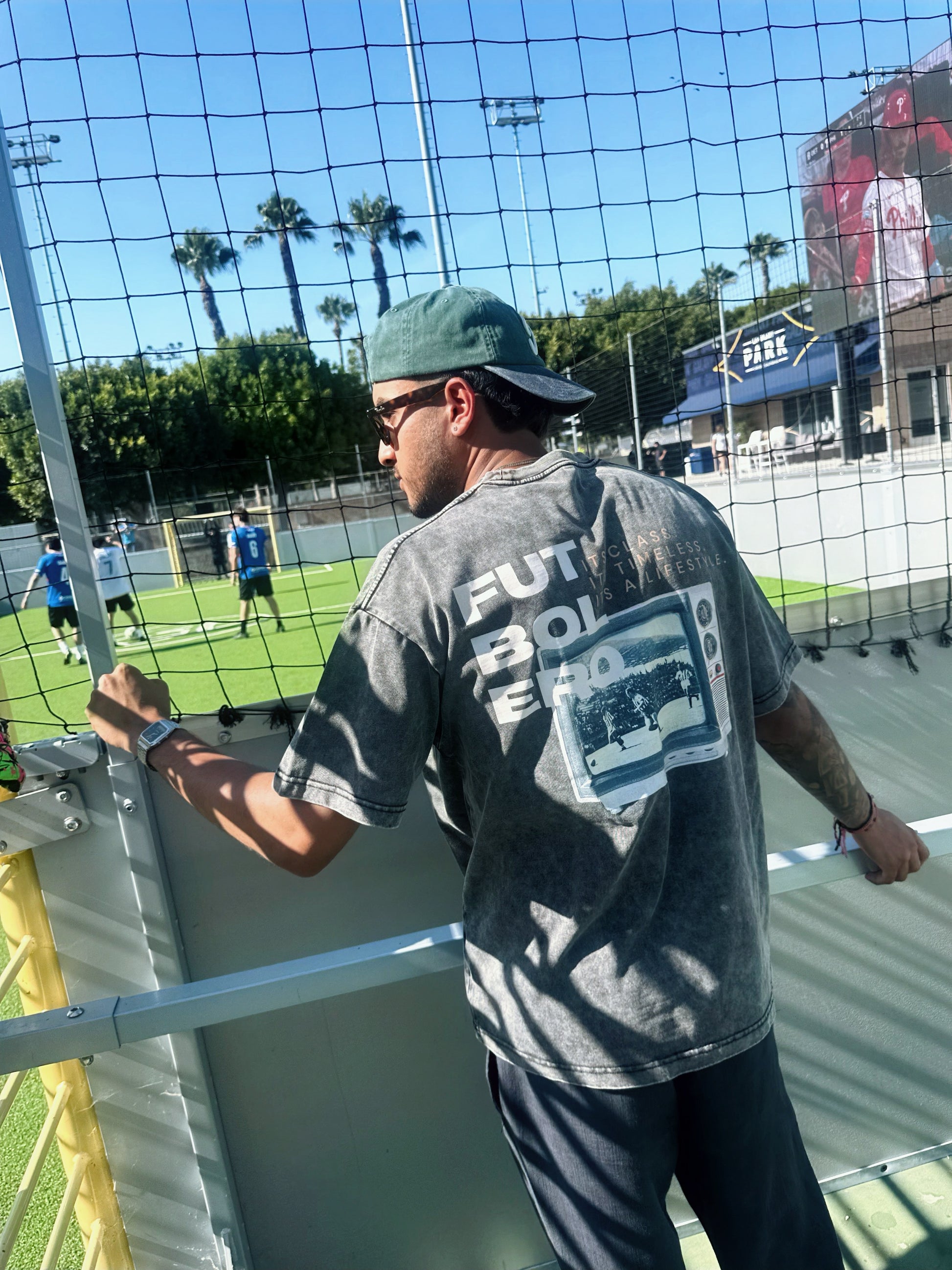 A nod to fútbol’s golden age, The Golden Era Tee blends modern streetwear with vintage soul. Designed on a premium black acid-washed base with a slightly oversized fit, this shirt features bold Futbolero lettering and an old-school television graphic replaying the culture that raised us and proves futbolero class is timeless.